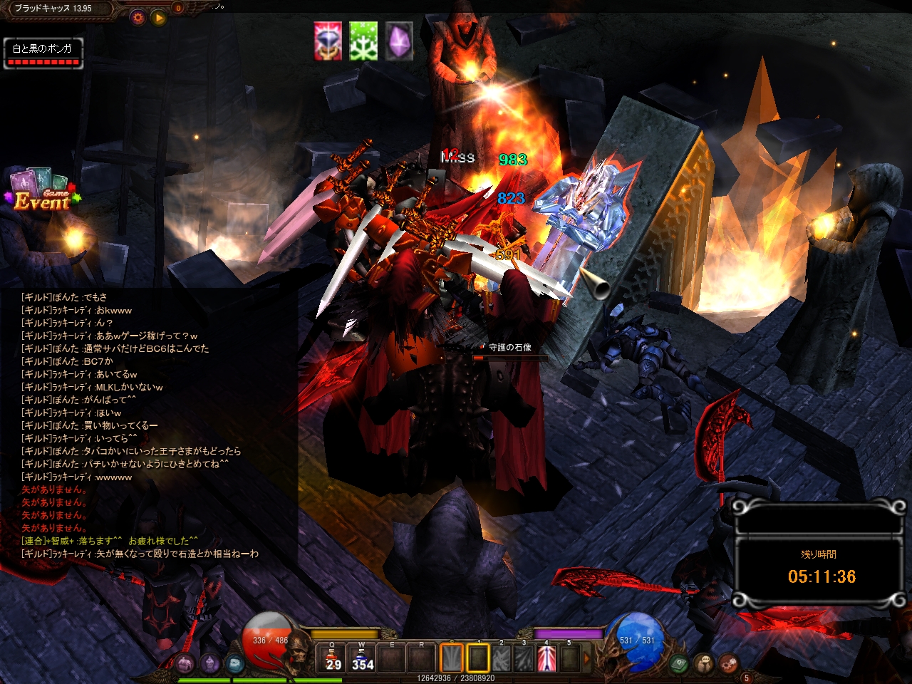 調子に乗りすぎて矢が無くなって殴りで石造叩いたり><